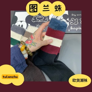 2025秋冬新款袜子女欧货个性潮袜撞色条纹高级感网红同款洋气百搭