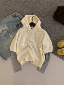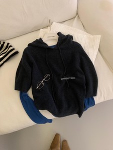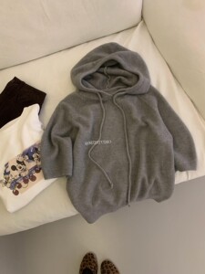 MZI STUDIO 秋季新款韩版简约百搭高级感连帽中袖套头毛衣女25666