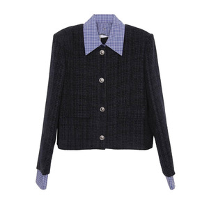 假两件格子短款外套女秋季2025新款高级松弛感慵懒粗风花呢小香风