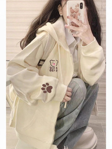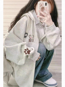 2025小众新款百搭卡通图案开衫卫衣女秋冬新宽松百搭甜美连帽外套