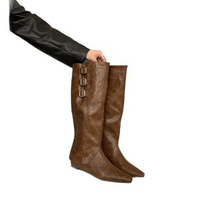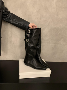 羊皮版~内增高套筒可拆卸裤管长靴女2025秋冬新款两穿尖头马丁靴