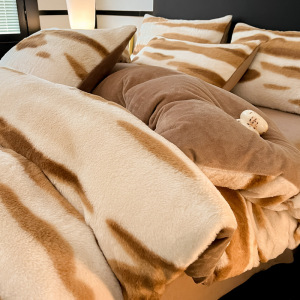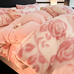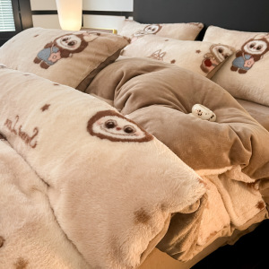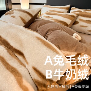 A类加厚兔毛绒牛奶绒四件套冬季保暖兔兔绒被套被罩枕套床上用品