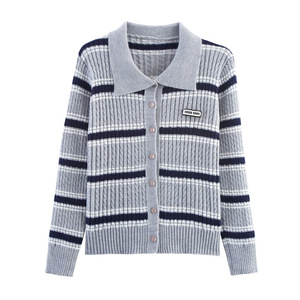 外贸单!2025秋季欧美风女装时尚休闲宽松翻领条纹长袖半身裙套装