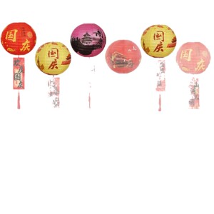 30cm国庆灯笼6个祖国万岁吊卡6个(送挂钩)