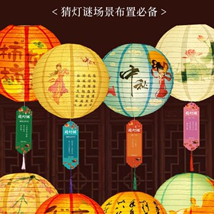 翁楷中秋猜灯谜谜语卡片幼儿园商场社区场景布置古风灯笼挂饰氛围