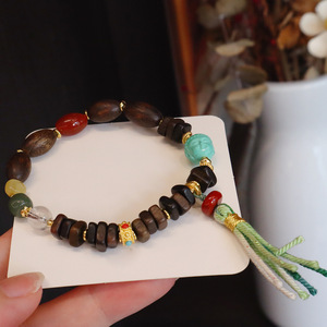 达拉干沉香木随型佛珠手链民族风饰品藏式文玩手串天然蜜蜡南红