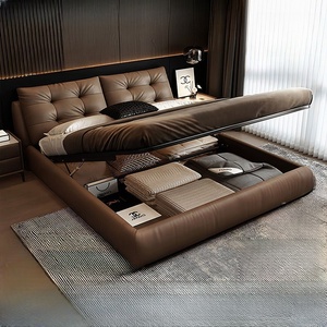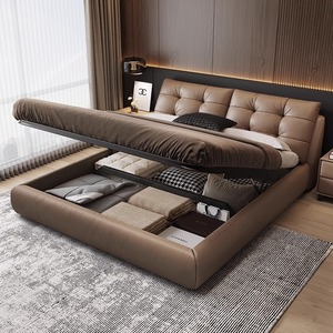 意式极简主卧床简约米8卧室双人轻奢气压高箱带储物空间