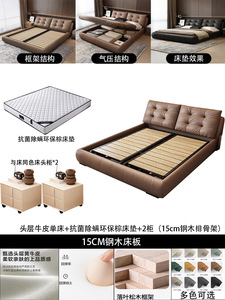 【尊享版】头层牛皮单床+除螨棕床垫+2柜(15cm钢木排骨架)