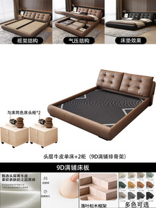 【旗舰版】头层牛皮单床+2柜(9D满铺排骨架)