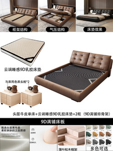【旗舰版】头层牛皮单床+云端睡感9D乳胶床垫+2柜(9D满铺排骨架)