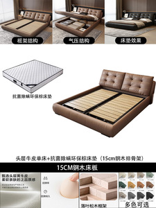 【尊享版】头层牛皮单床+除螨棕床垫(15cm钢木排骨架)