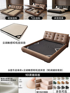 【旗舰版】头层牛皮单床+云端睡感9D乳胶床垫(9D满铺排骨架)