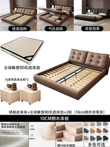 【升级版】纳帕皮单床+云端睡感9D乳胶床垫+2柜(10cm钢木排骨架)