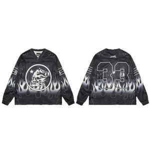 GLFS 新款外贸地狱星恶魔暗黑机车 火焰印花网银V领卫衣宽松长袖T