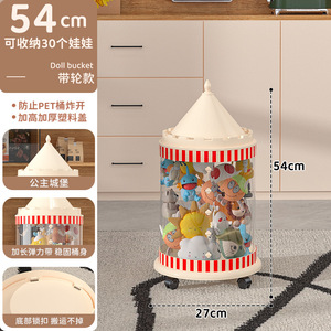 跨境娃娃收纳桶毛绒玩具大容量整理玩偶透明防尘儿童公仔带轮神器