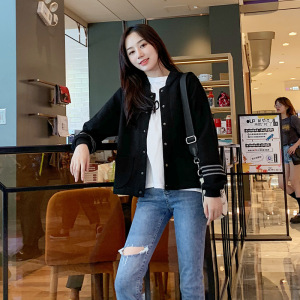 黑色短外套女长袖2025春秋小个子棒球服夹克薄款开衫学生百搭上衣