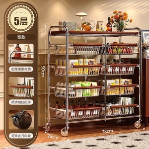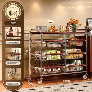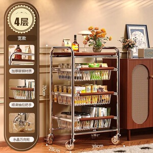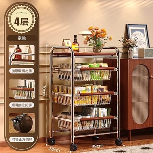中古风零食多功能夹缝小推车多层果蔬厨房菜篮可移动收纳架