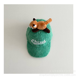 冬季儿童卡通小碗熊羊羔绒弯檐棒球帽男女童韩版可爱凹造型鸭舌帽