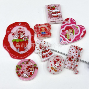通孔草莓女孩印花异形串珠笔配件手机钥匙链diy手工饰品串珠材料