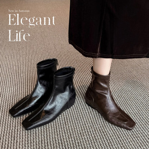 2025新款方头短靴女内增高时装靴子女坡跟及裸靴大码女靴41到43