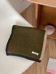 2025新款冬季撞色羊毛围巾边框双色百搭保暖拼色高级感围脖