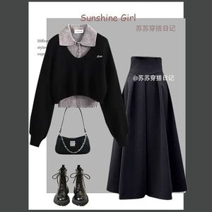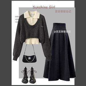 秋季大码套装女2025新款设计感毛衣针织背心显瘦百搭半身裙三件套