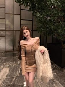 纯欲风辣妹包臀连衣裙女秋冬2025新款设计感修身显瘦一字肩短裙子