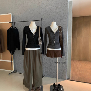 WGWE6929韩系休闲假两件拼接修身长袖针织衫
