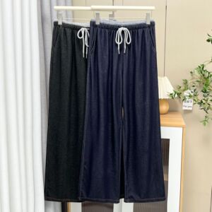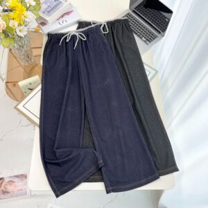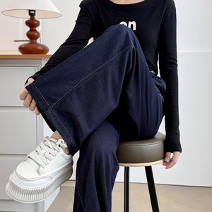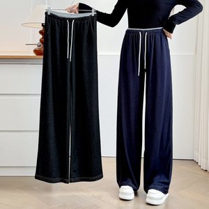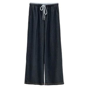 200斤大码牛仔裤秋装新款简约撞色腰抽绳直筒裤胖妹妹休闲裤8250