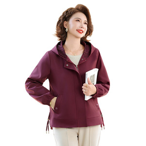 小个子妈妈秋装外套2025新款中老年春秋宽松上衣阔太太连帽风衣女