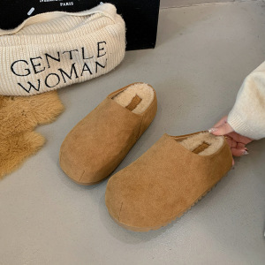 休闲加绒懒人外穿勃肯半拖鞋女2025秋季新款厚底包头一脚蹬棉拖鞋
