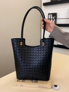 新款通勤高级气质真皮编织托特包慵懒风大容量轻奢女包外出单肩包