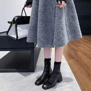 2025韩系姐姐~秋冬新款方头水洗马皮瘦瘦短靴粗跟马丁靴女