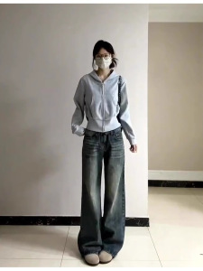 灰色修身短款卫衣外套女春秋显瘦正肩早秋穿搭上衣小个子连帽收腰