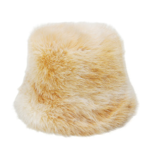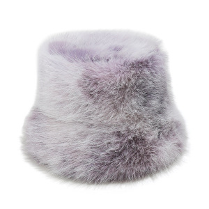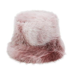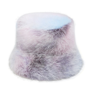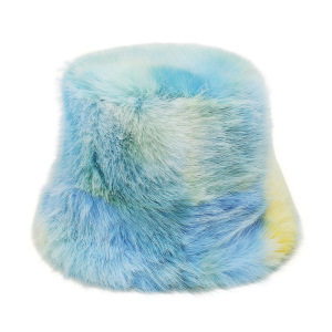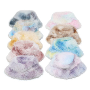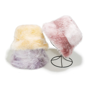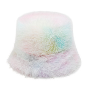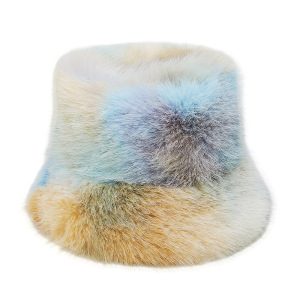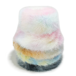 2025冬季仿水貂毛绒保暖盆帽显脸小扎染渐变色彩虹皮草渔夫帽女冬