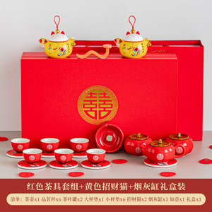 红色柿子茶具+2红招财猫+烟灰罐