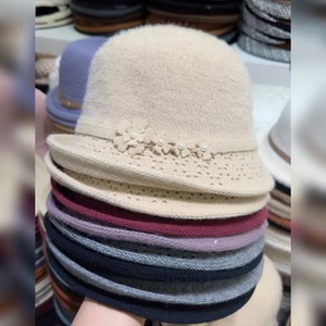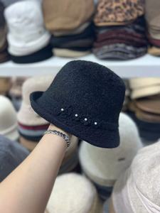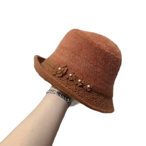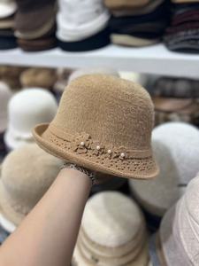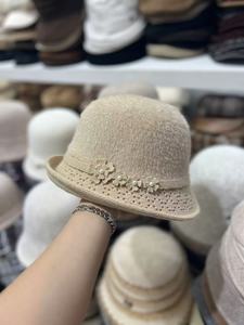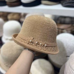 帽子女秋冬花朵毛绒盆帽中老年妈妈优雅礼帽时尚户外毛球渔夫帽子