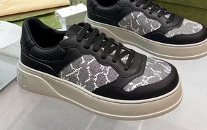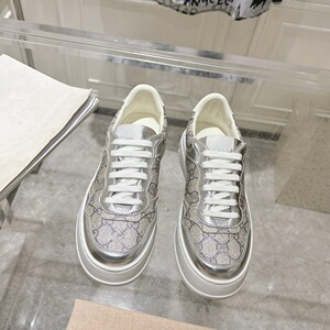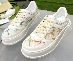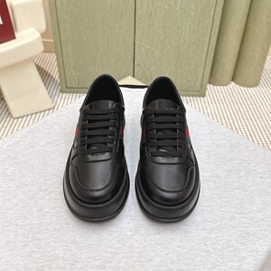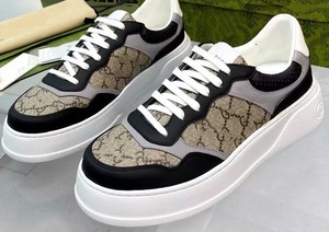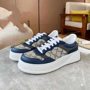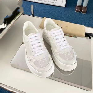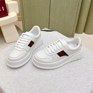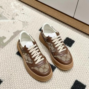 外贸新款真皮老花饼干鞋情侣百搭增高运动老爹鞋厚底休闲小白鞋女