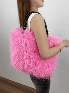 时尚高级感毛毛包女2025新款秋冬潮大容量仿羊滩毛绒单肩托特包潮