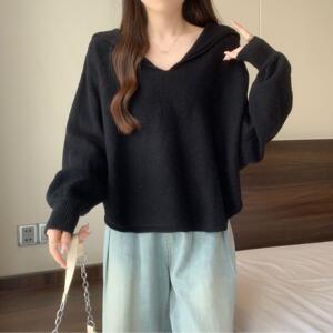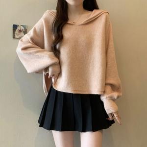 大码女装2025秋新款小众套头海军领长袖针织衫韩系穿搭慵懒风毛衣
