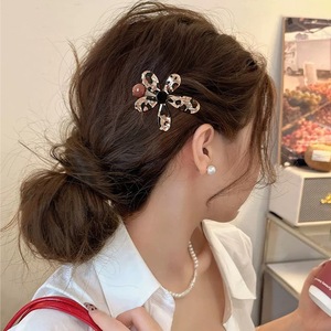 高级感豹纹花朵珠珠鸭嘴夹女高级感侧边刘海夹发夹前额碎发一字夹