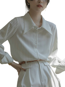 春秋法式别致条纹长袖衬衫女装设计感小众通勤职业衬衣高级感上衣