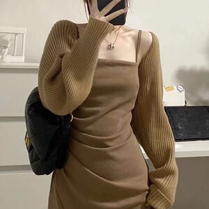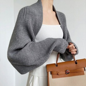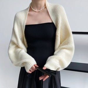 法式小香风坎肩吊带裙外搭针织开衫外套女蝙蝠袖毛衣气质短款披肩