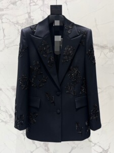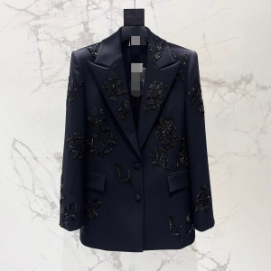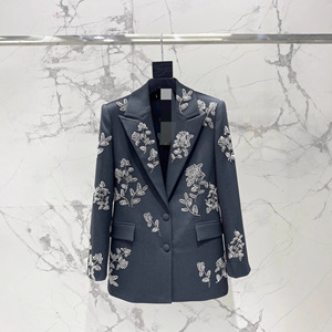2025秋季新款简约时尚百搭翻领单排扣设计重工钉珠西装外套批发
