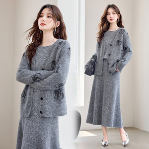 时尚针织套装女2025秋冬季新款显瘦一整套穿搭毛衣半身裙三件套