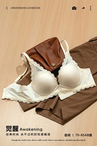 K41# 缎面无痕轻薄透气网纱无钢圈中薄杯聚拢内衣女调整型文胸罩