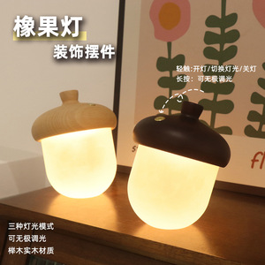 跨境新品实木松果灯可充电创意灯具橡果灯家居工艺摆件氛围小夜灯