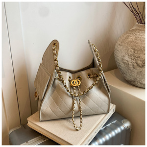 高级感通勤单肩腋下包包女新款小香风菱格水桶包韩版潮时尚托特包