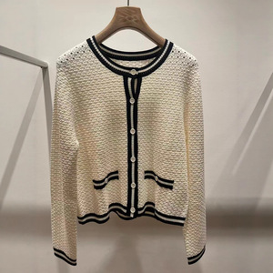 2025秋季新款简约时尚百搭圆领长袖单排扣设计纯色针织衫批发
