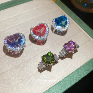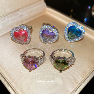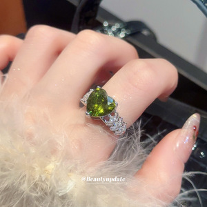 超闪锆石爱心开口戒指时尚简约百搭气质食指戒奢华轻奢高级感指环